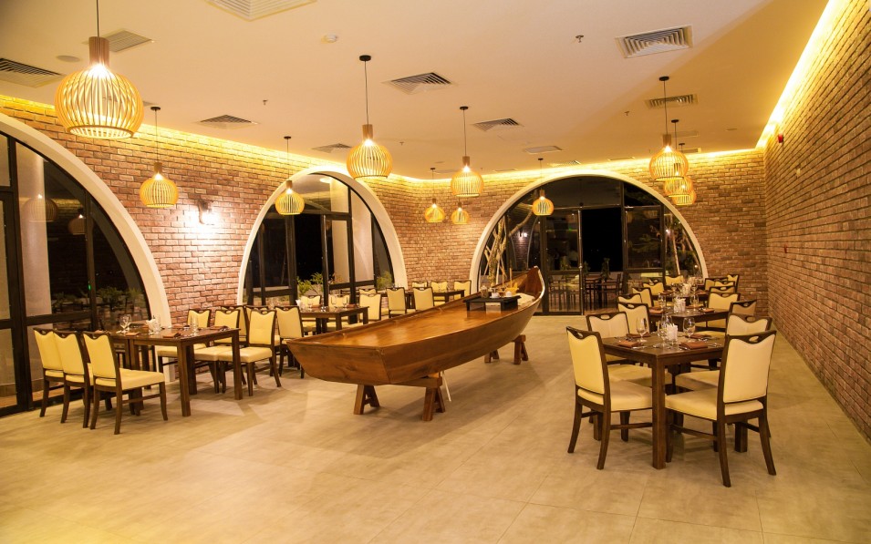 Nhà hàng mở nhìn ra biển với rì rào sóng vỗ. 1 quầy bar sang trọng tại sảnh và 1 quầy bar phong cách bên hồ bơi để bạn tận hưởng trọn vẹn hương vị đặc sắc của đồ uống bên dòng nước mát trong.